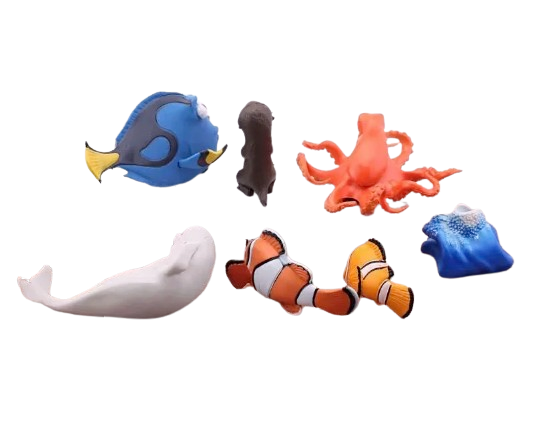 Zestaw zawiera ulubione postacie z podwodnego świata, które mogą stać się wspaniałą dekoracją lub inspiracją do zabawy.