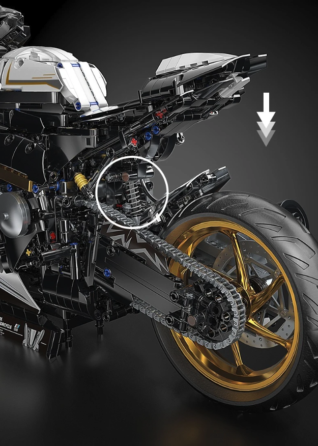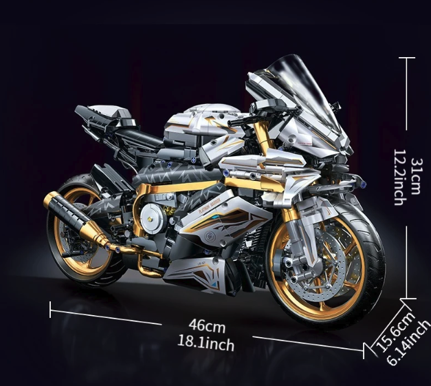 Imponujący zestaw, składający się z aż 2045 elementów, pozwoli Wam zbudować prawdziwe arcydzieło techniki, które zachwyca szczegółowością. Odkryjcie jego dynamiczną sylwetkę, lśniące owiewki w eleganckich kolorach oraz złote akcenty, które podkreślają jego sportowy charakter i prestiż. Model ten został wyposażony w realistyczne detale, takie jak działające zawieszenie, ruchoma kierownica oraz misternie odwzorowany silnik i układ wydechowy. Składanie tej zaawansowanej konstrukcji to pasjonujące wyzwanie dla każdego miłośnika motoryzacji i modelarstwa, oferujące godziny satysfakcjonującej pracy. Gotowy motocykl stanie się nie tylko dumą konstruktora, ale również spektakularnym eksponatem, który przyciągnie wzrok w każdym pomieszczeniu.
