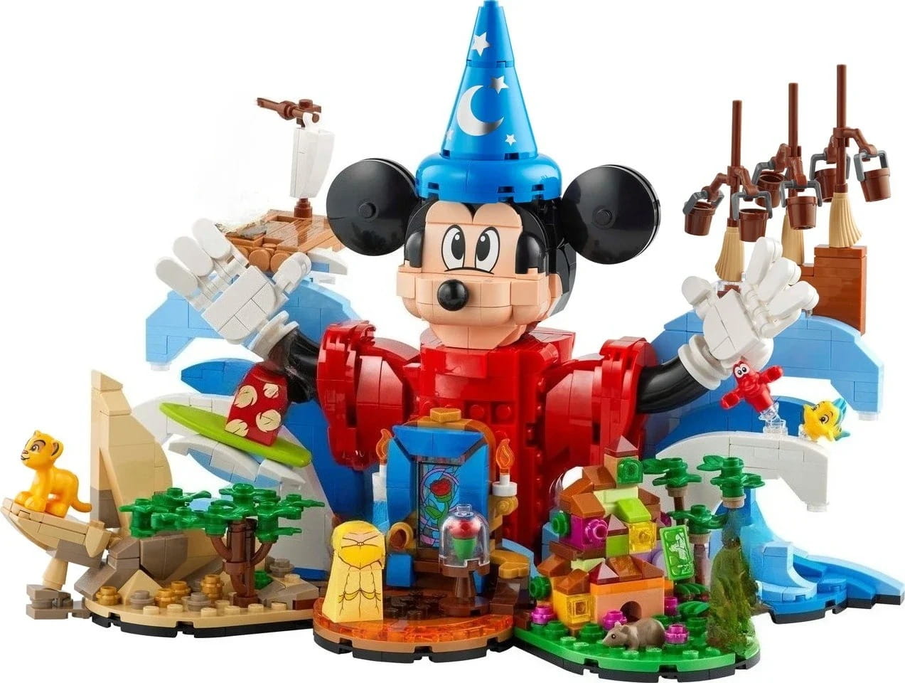 Ten spektakularny zestaw Disney Magia, składający się z 1103 elementów, pozwoli Wam stworzyć ikoniczną postać Myszki Miki jako Czarodzieja w otoczeniu ulubionych scen. W samym sercu tej magicznej dioramy znajduje się wspaniale odwzorowana Myszka Miki w słynnym stroju z filmu "Fantazja", gotowa dyrygować czarodziejską orkiestrą. Wokół niej ożywają miniaturowe scenki z udziałem innych ukochanych postaci, takich jak figurki Simba czy Lumiere, a także zaczarowane miotły i podwodne skarby. Budowanie tego modelu to prawdziwa podróż przez historię animacji, idealna dla fanów Fantazja klocki i wszystkich, którzy cenią kreatywną zabawę na najwyższym poziomie. Ukończona konstrukcja stanie się nie tylko źródłem niekończącej się zabawy, ale również olśniewającym, kolekcjonerskim modelem Disneya, który będzie dumą każdej półki.