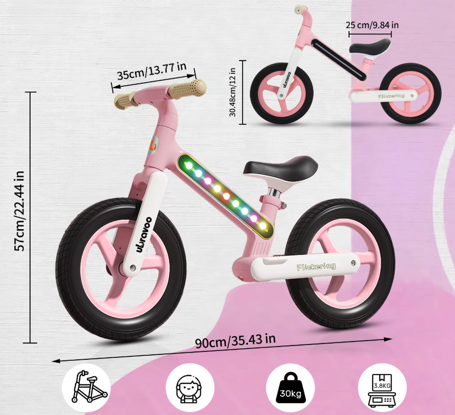 Lekki Rowerek Biegowy Biegowy Dla Dzieci Bezpieczny Regulowany Z Led 94aa
