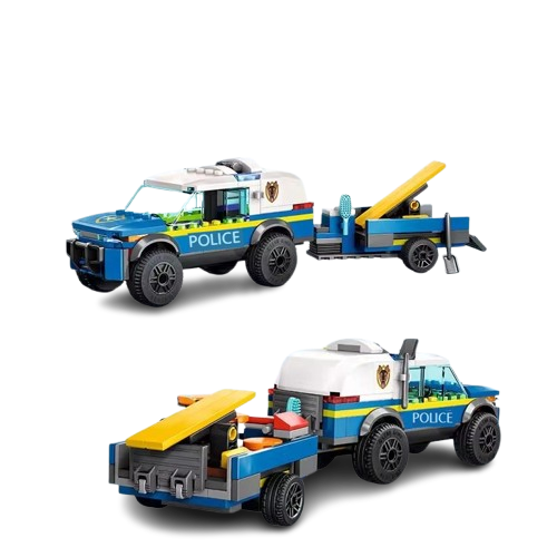 Zestaw Klocki Policja Samochód Terenowy + Przyczepa 197 sztuk to świetna propozycja dla małych fanów policyjnych akcji. Pozwala zbudować terenowy samochód policyjny z przyczepą i ruszyć na ekscytujące misje pościgowe podczas kreatywnej zabawy.